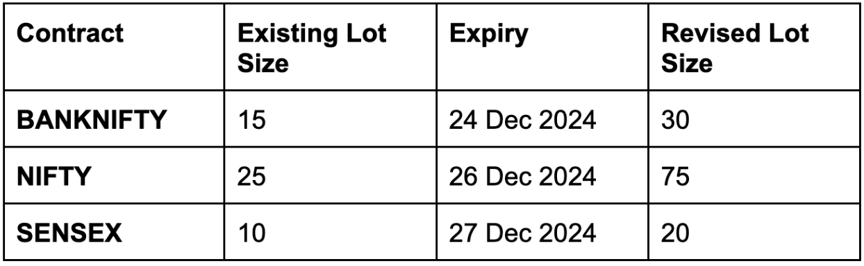 As per our previous communication, we would like to remind you about the lot size revisions and subsequent actions for BANKNIFTY, NIFTY, and SENSEX quarterly and half-yearly contracts. The revised lot sizes are detailed in the following table: