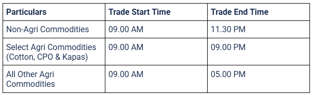 All MCX Intraday positions will be squared-off at 11.00 P.M.