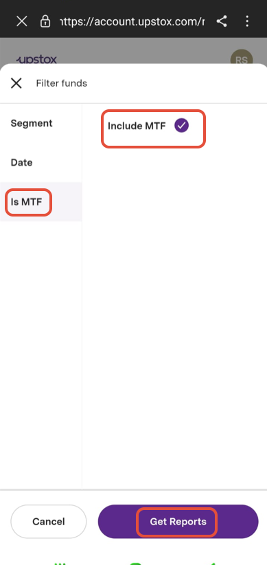 Step 9: To get MTF reports, Click on 'Is MTF' and select Include MTF'. Click 'Get Reports.'