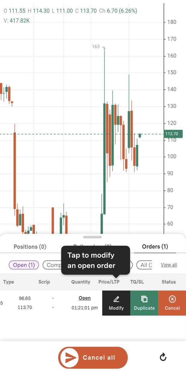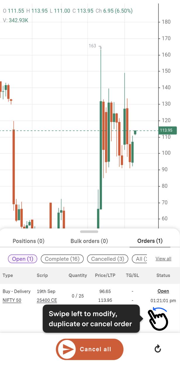 Step 1: Go to the Orders section at the bottom and swipe left on the pending order.