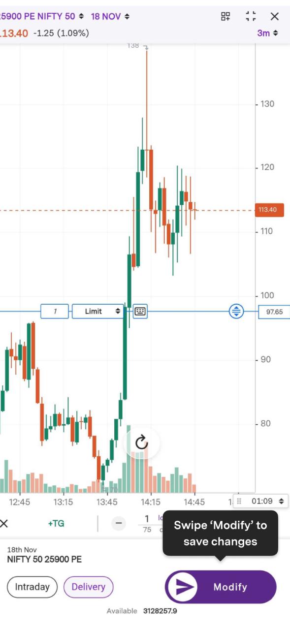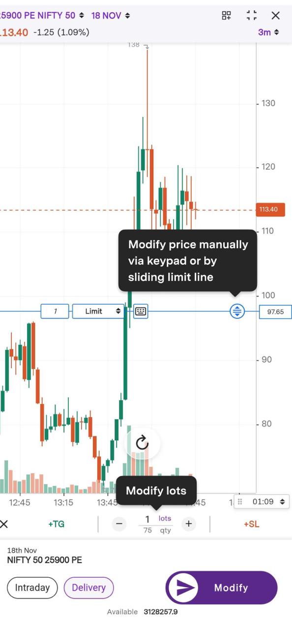 Step 3: You can drag the limit, stoploss, and target line to set them at the desired price.