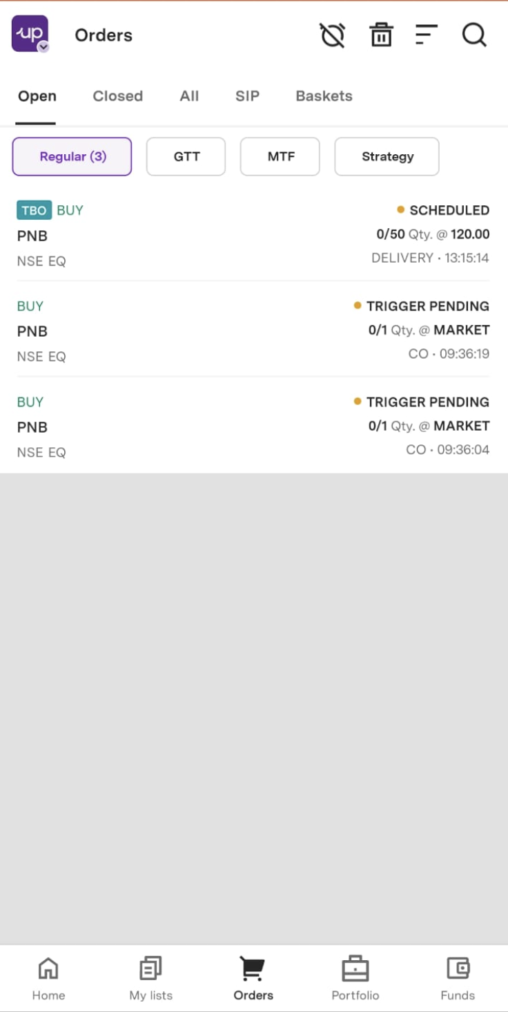 Step 1: Go to the Order Book by tapping the Orders tab in the bottom navigation bar.