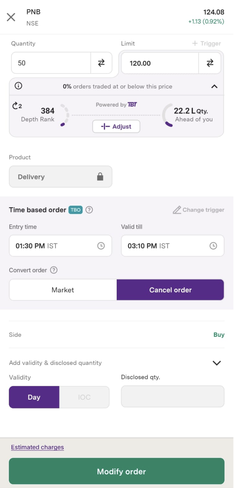 Steps to modify Time-Based Order (TBO):