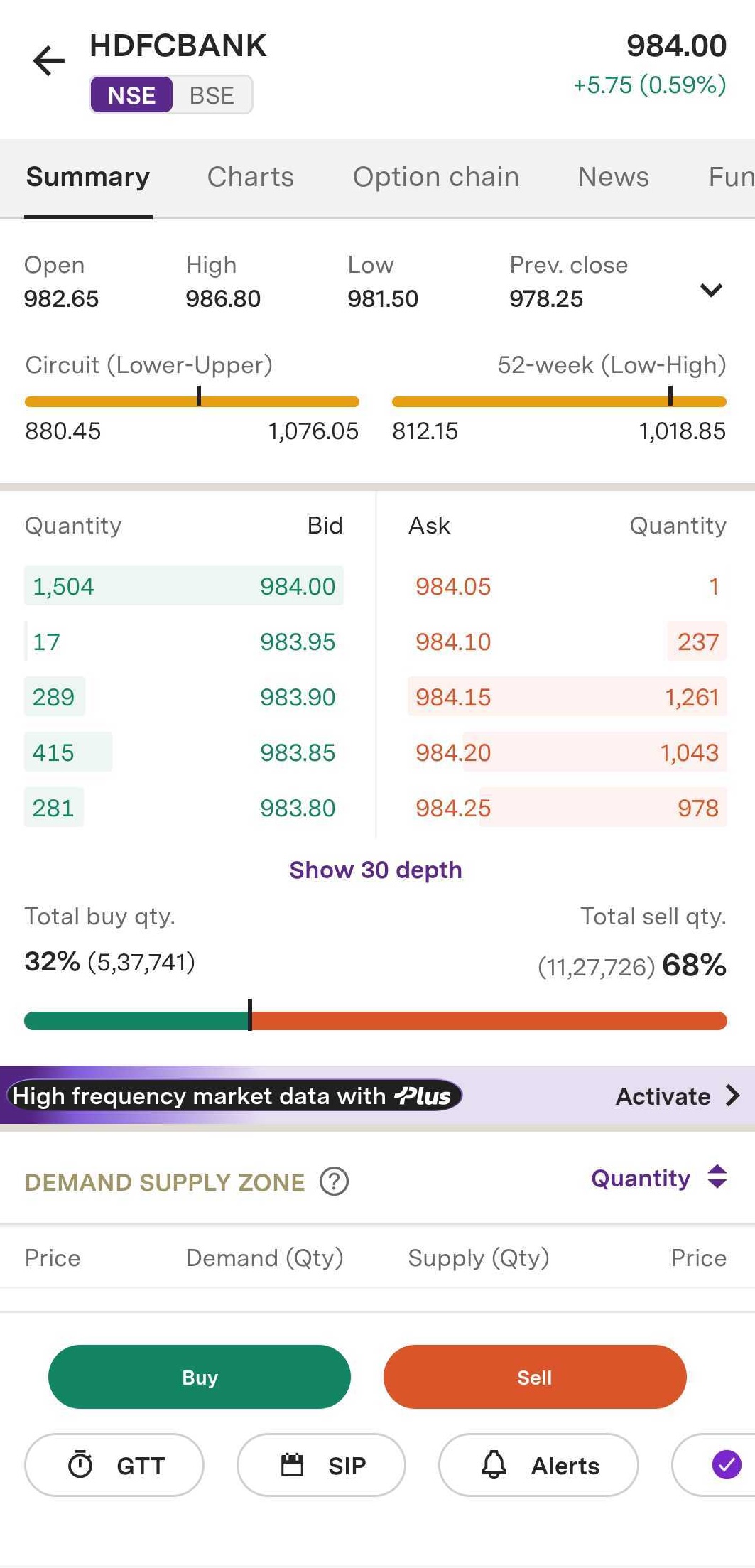 Step 3: To access the 'GTT' tab, navigate to the Summary page and select it. Alternatively, you can click on 'Buy' and then choose 'GTT'.