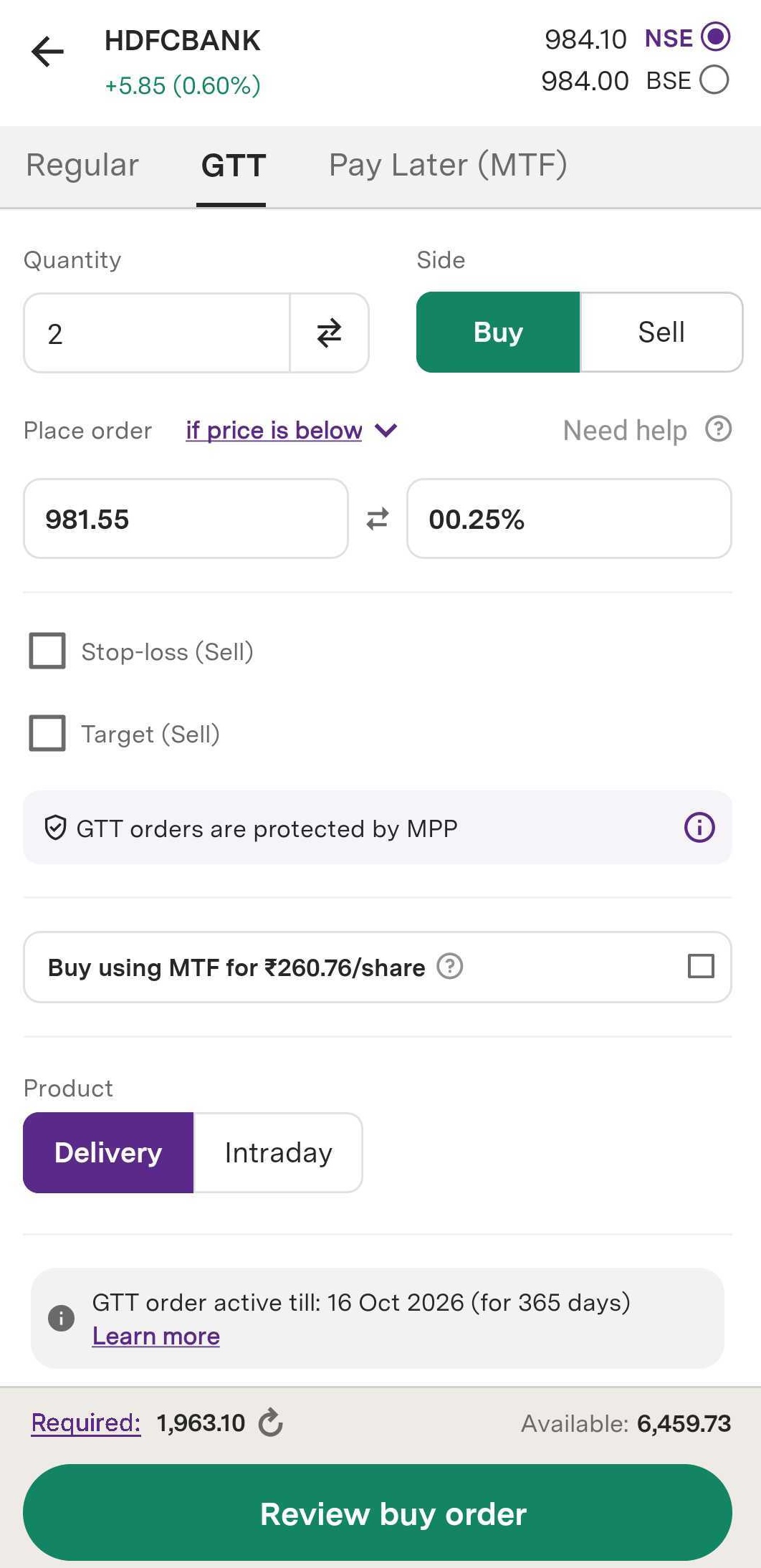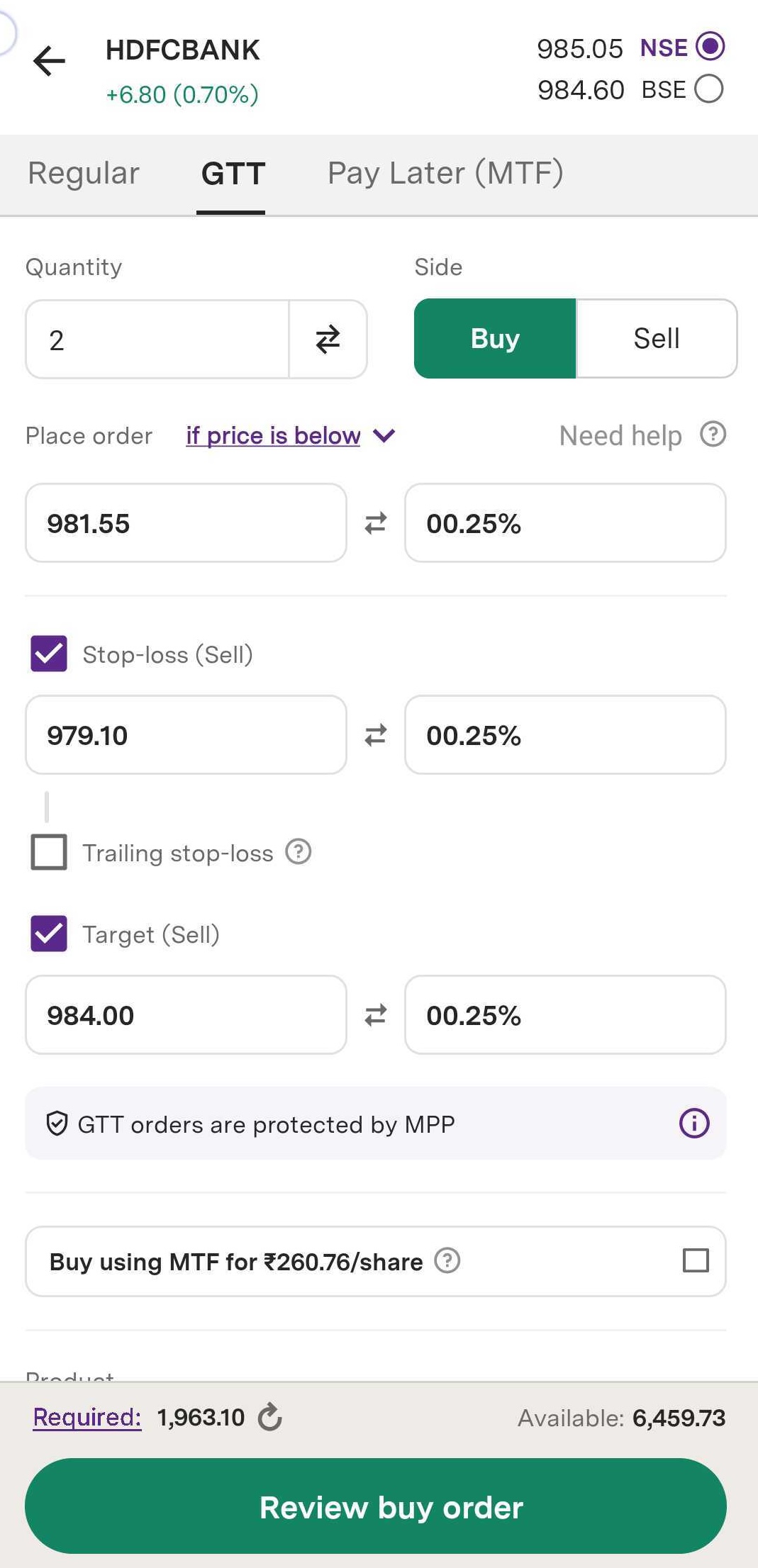 Step 9: Click on ‘Review buy order’ to place your order.