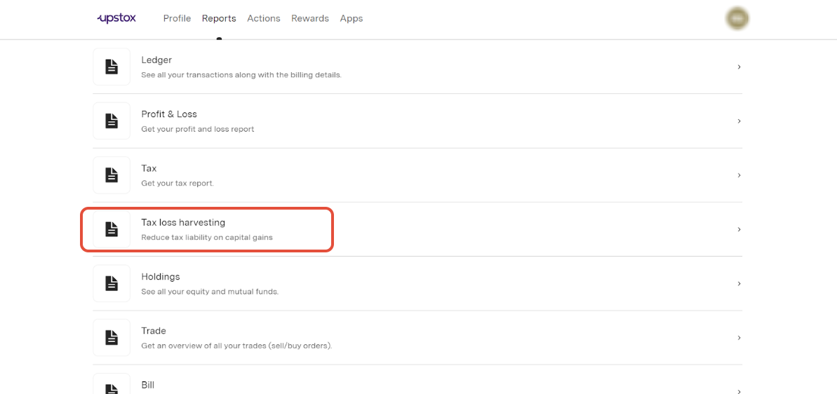 Step 3: Click on ‘Tax loss harvesting’ under ‘Reports.'