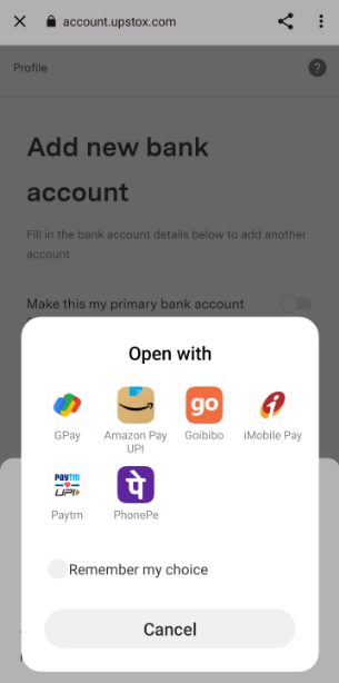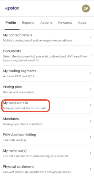 Adding a new bank account via UPI to your Upstox account is incredibly simple. We've prepared easy-to-follow steps along with screenshots to guide you through the process seamlessly. With just a few clicks, you'll be able to link your bank account to Upstox, ensuring smooth transactions. Just follow the steps below to get started: