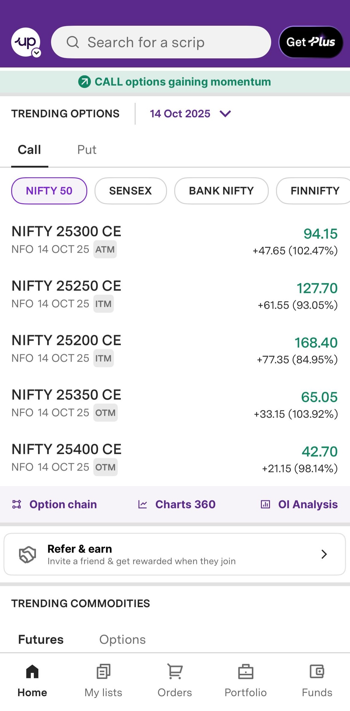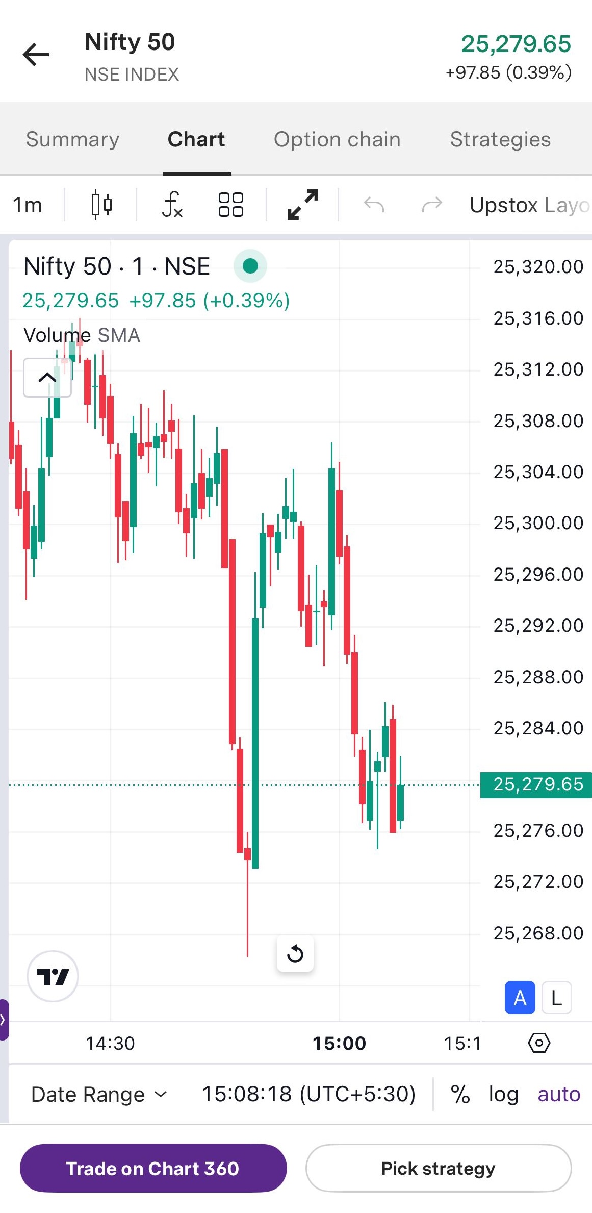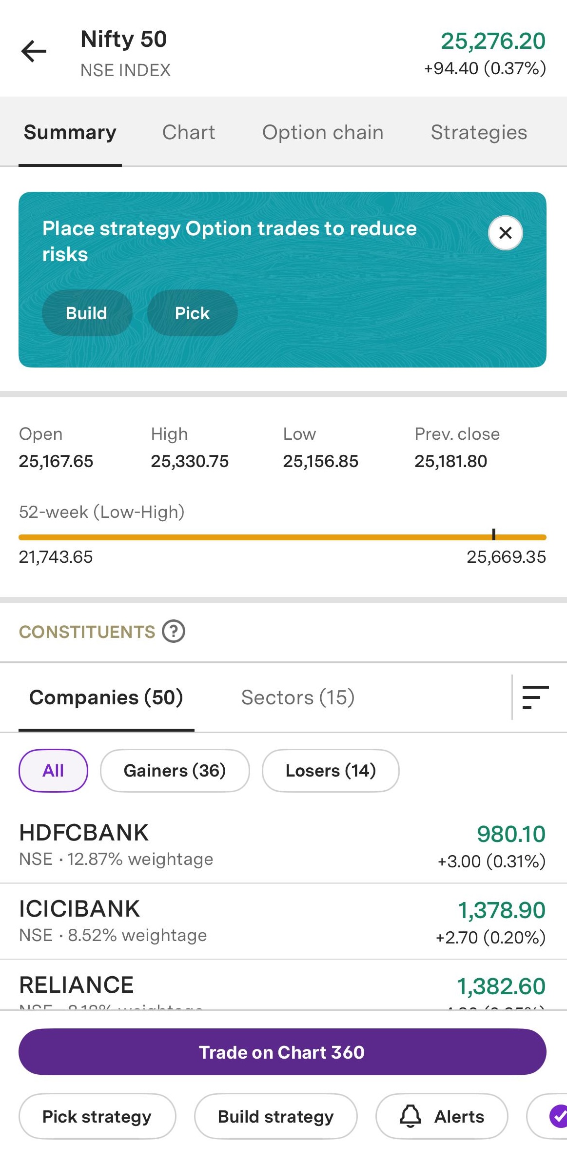 2. From the Indices Summary Page: Select any index from your Watchlist. On the summary page, tap Trade on Chart 360.