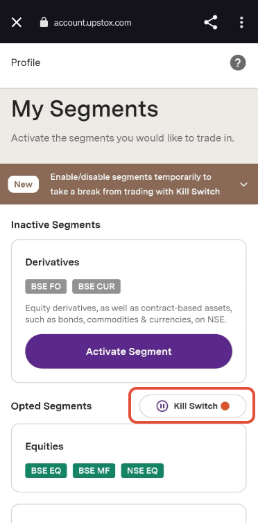 Step 4: Click on ‘Kill Switch’ to disable the segment.