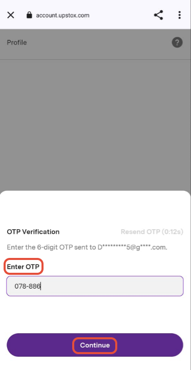 Step 7: Enter the 6-digit OTP sent to your registered email ID.Then click on ‘Continue’.