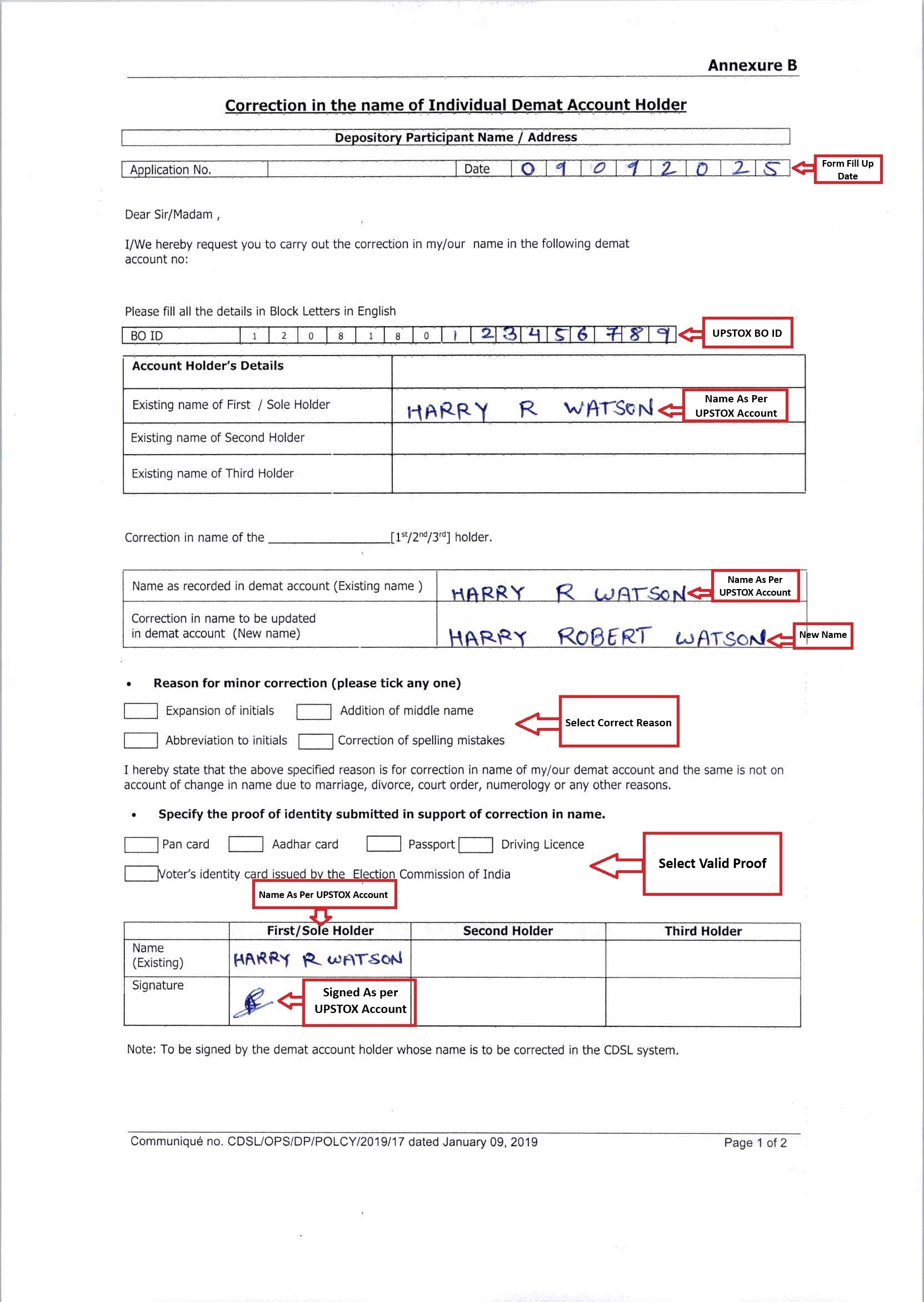To update the name on your Upstox account, you’ll need to follow the steps below. This process requires submitting physical copies of specific forms and supporting documents via courier.