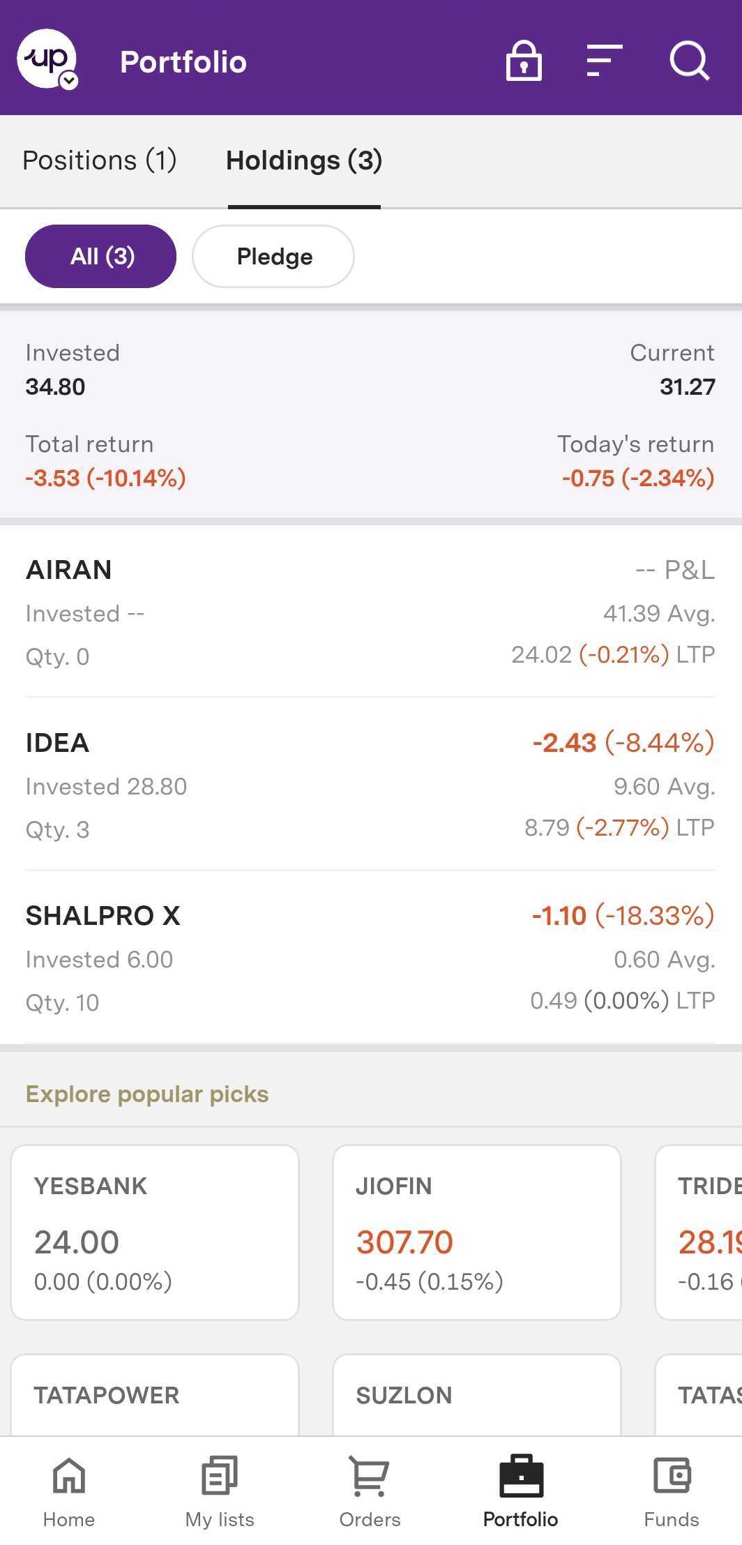 Step 1: Navigate to ‘Portfolio’→ ‘Holdings’.