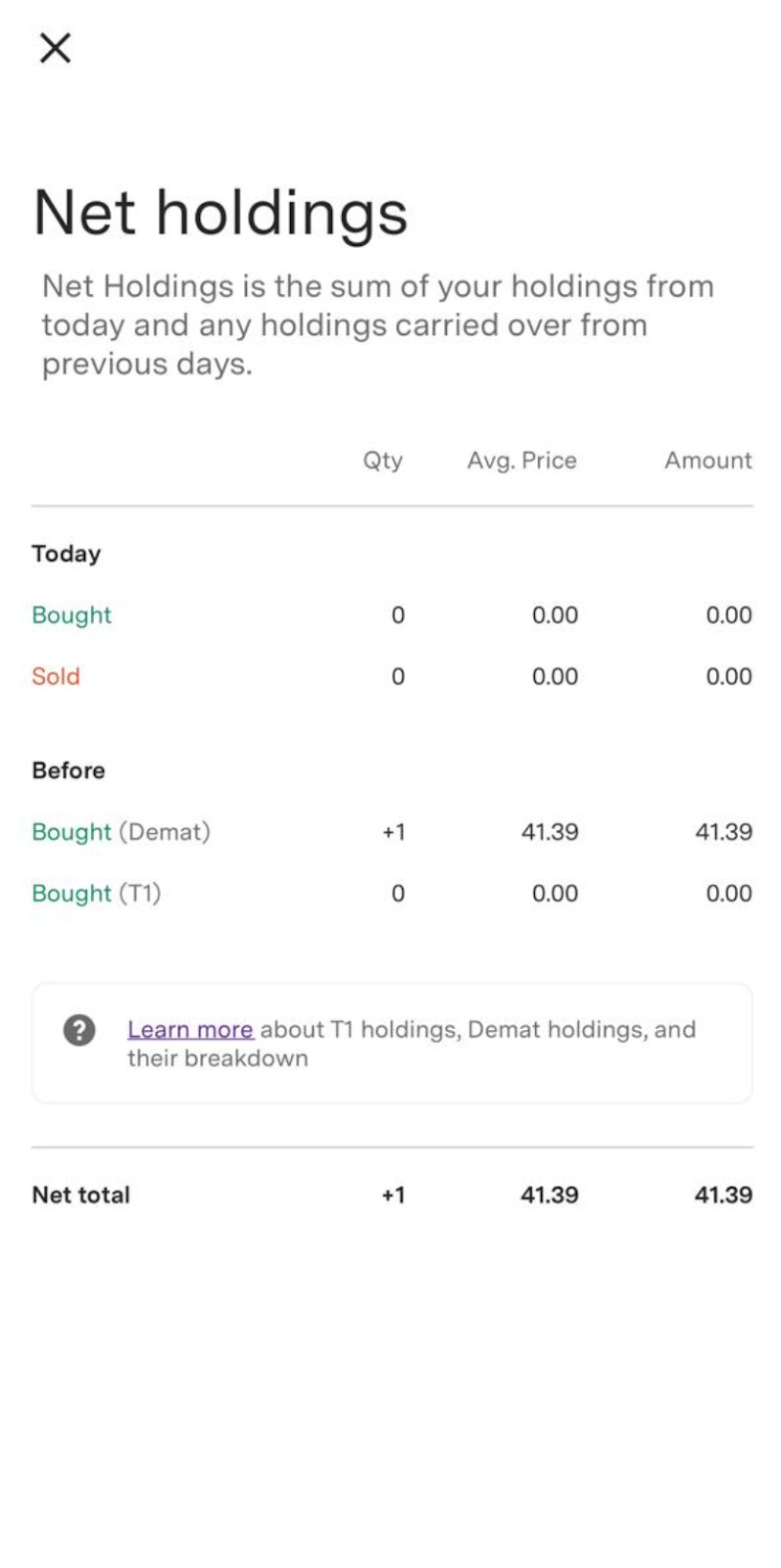 Step 4: The Net holdings page gets unwrapped and displays the summation of holdings for the day and holdings carried over from the previous day.