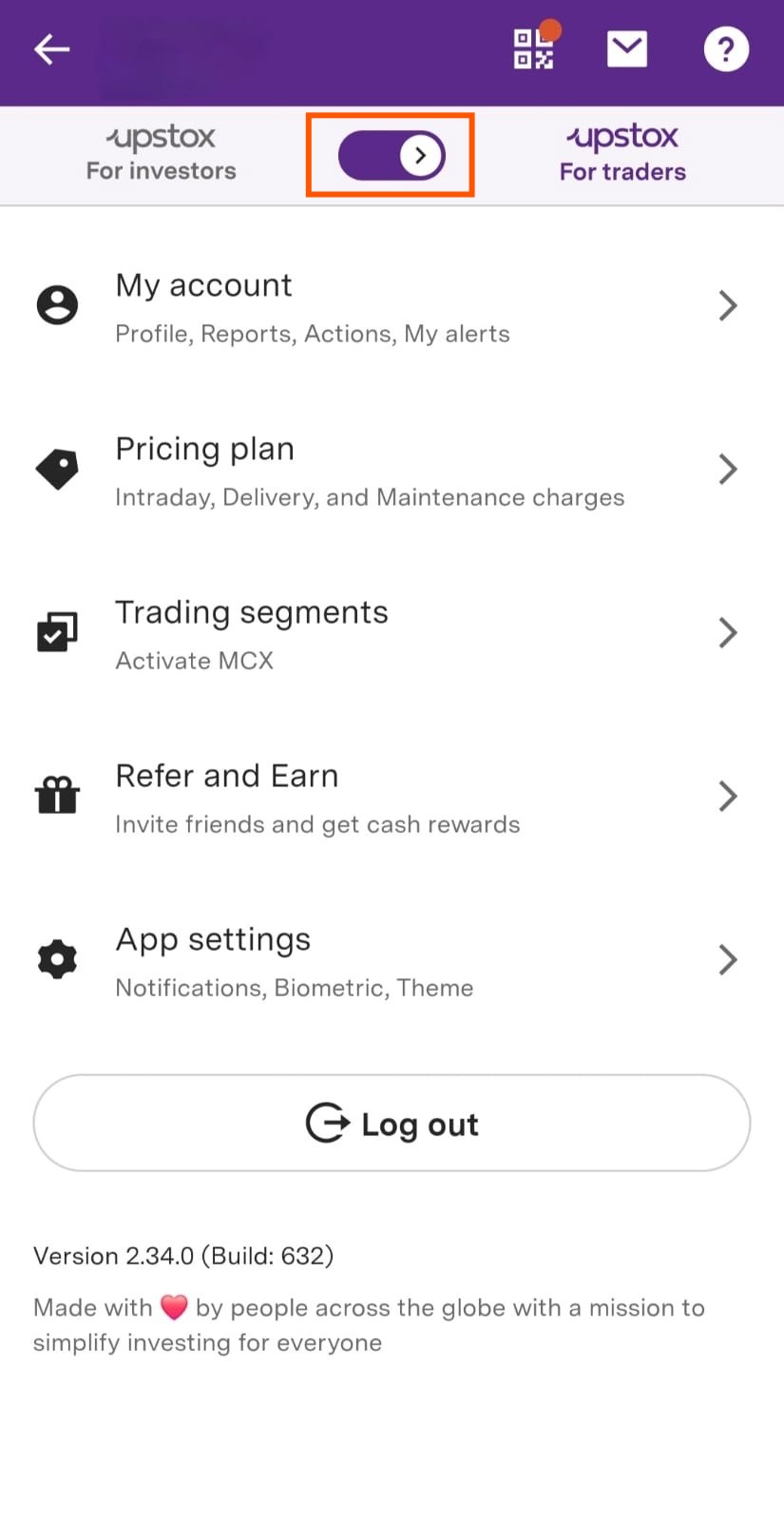 To switch between Upstox and Upstox pro, you can follow the below steps. As an example, we are taking a case when the user is moving from Upstox to Upstox Pro. The same steps can be followed for moving from Upstox Pro to Upstox.