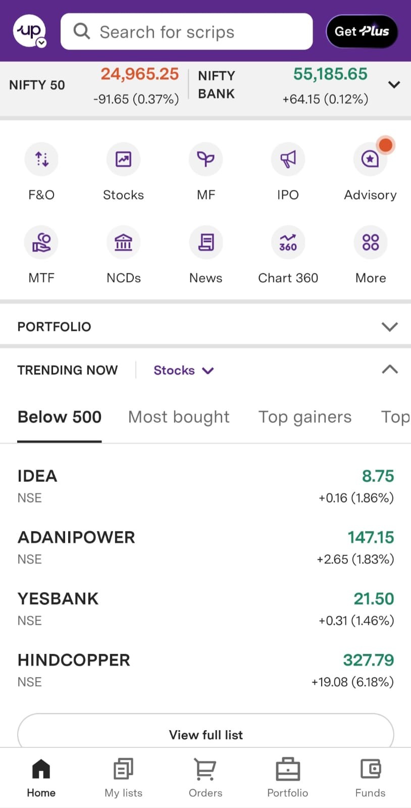 Step 1: Login to the Upstox app using your 6-digit Pin or Biometrics.