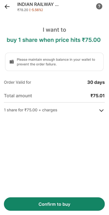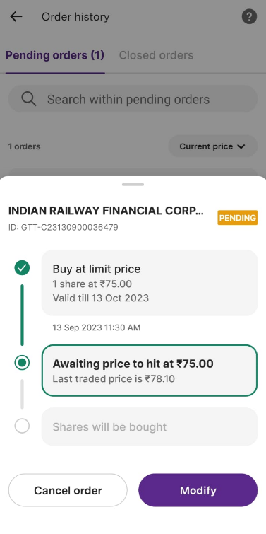 Note: 1. You cannot modify the validity of the order 2. You cannot change the order type from Limit to Market/SIP