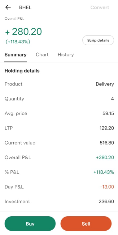 Step 3: Select a Stock that you want to sell and click ‘Sell’.