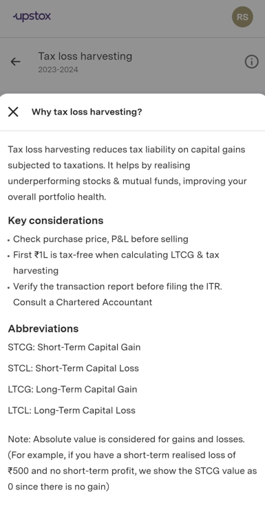 Step 5: Click on 'Tax loss harvesting'