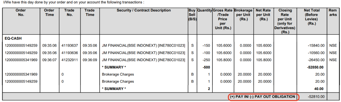 Trade Details: You can review your trade details, including the Order Number, Order Time, Trade Number, Trade Time, scrip details, and transaction type (buy or sell). Financial Obligations: