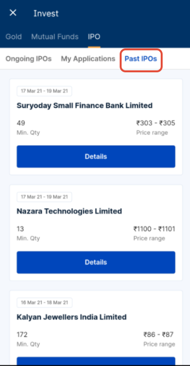 - Click on the ‘Past IPO’ tab.