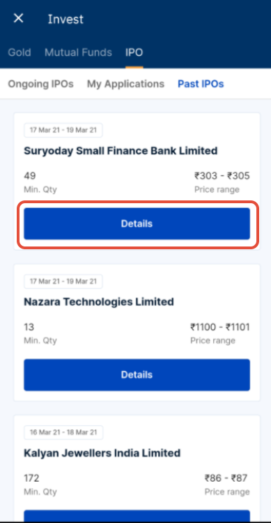 - Click on the details of the IPO whose status you want to check.