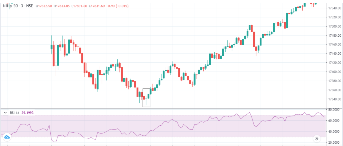 We will use the RSI Divergence technique to look for a trend reversal and a candlestick pattern to confirm the trade setup. Hence this strategy is going to be a combination of both RSI Divergence and a candlestick pattern.