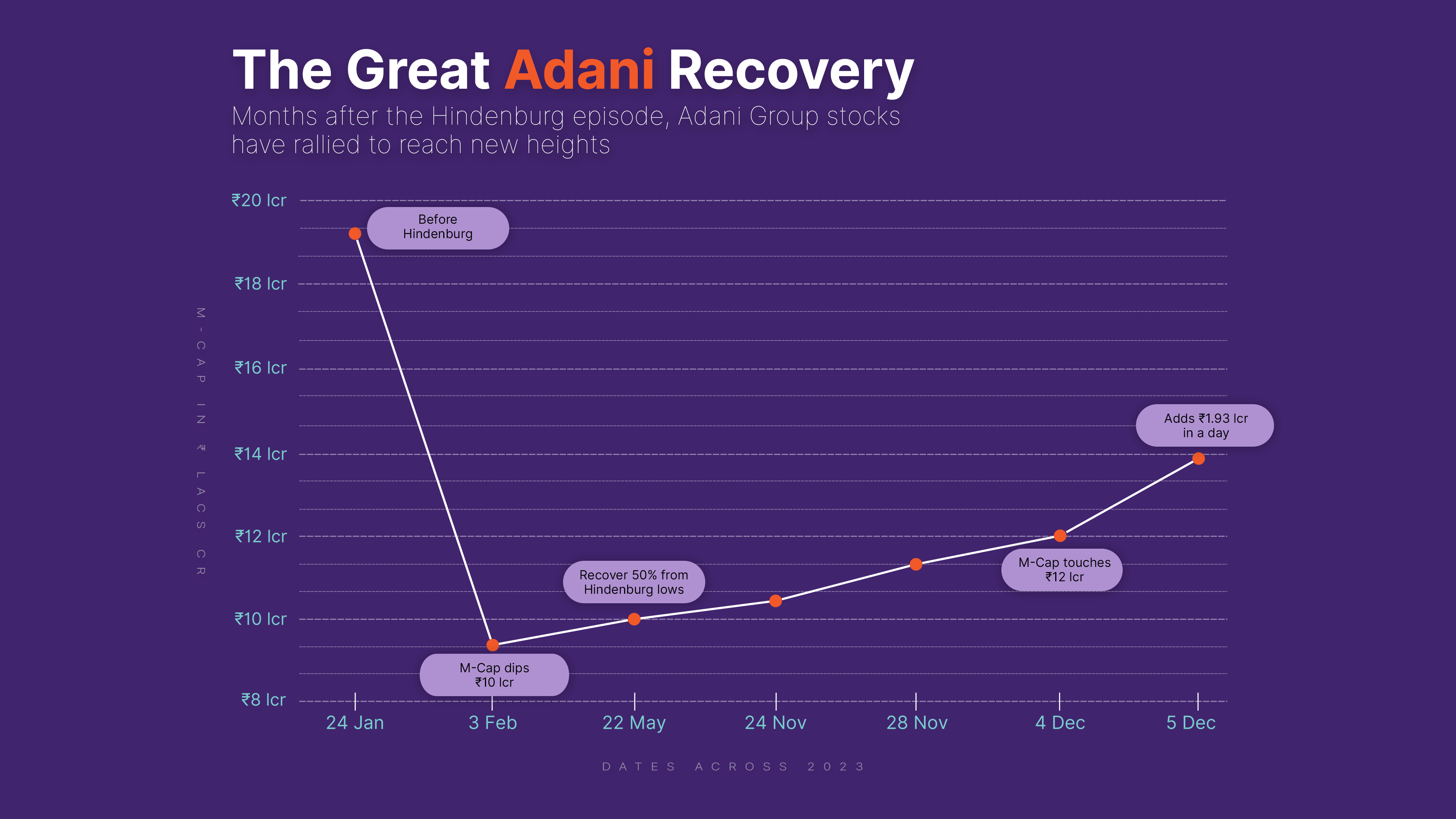 Combined market cap of Adani group stocks touched ₹15 lakh crore mark for the first time since February 2023.Equities market witnessed FIIs inflow of an estimated ₹17,000 crore.
