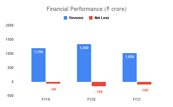 Over the last three financial years, the company has suffered losses