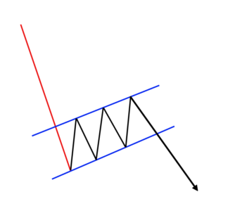 A flag and pole pattern describes a specific chart formation used to identify the continuation of a previous trend from a point at which the price moved against the same trend. In this pattern, the price makes a sharp move in one direction, reminding the viewer of a pole on a flagpole. Later, the price moves into the sideways range, attempts to change the trend and starts moving upwards with little to no momentum. This is considered the flag part of the flag and pole pattern.