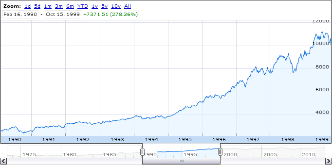 The Dow Jones Industrial Average: 1990 through 1999[/caption]
