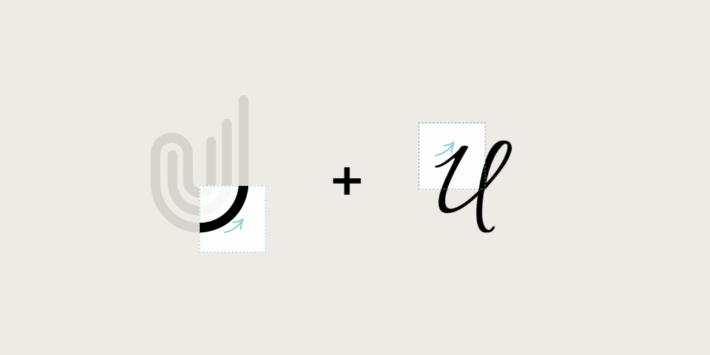 As a form, the arc is abstract. It captures upward movement in an intuitive way, without relying on narrow, literal concepts like graphs or charts. The arc slots neatly into place at the fore of the 'u', creating a custom letter form that is a modern take on the decade-old way of writing—on paper, in cursive.
