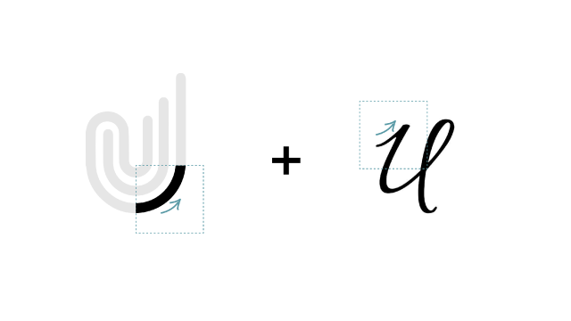 As a form, the arc is abstract. It captures upward movement in an intuitive way, without relying on narrow, literal concepts like graphs or charts. The arc slots neatly into place at the fore of the 'u', creating a custom letter form that is a modern take on the decade-old way of writing—on paper, in cursive.