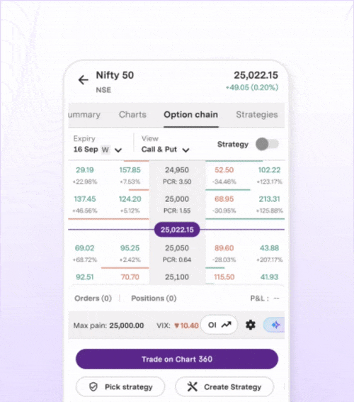 Now, the Option Chain is not just for viewing; it’s for planning, analysing, and deploying pre-set strategies all in one place. Strategies like Long Straddles, Long Strangles, Vertical Spreads, Iron Butterfly, and Iron Condor are integrated with LIVE data, Greeks, risk/reward, and margin insights. This means with a single click, you can launch any strategy directly in the Strategy Builder using your saved preferences. You can also customise columns, lot sizes, strike intervals, and auto-refresh timers to trade your way, while tracking real-time expiry updates and positions.