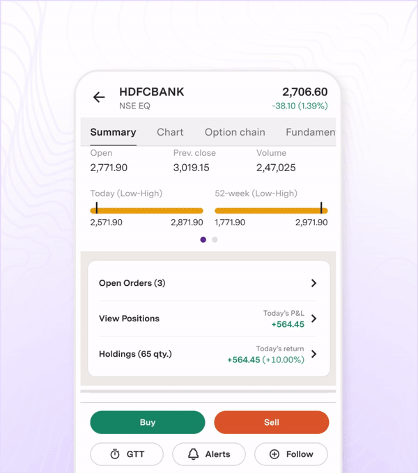 Scrip details are empowered to show you all Open orders, Positions and holdings within the Summary view to review and act quickly, thus saving you time.