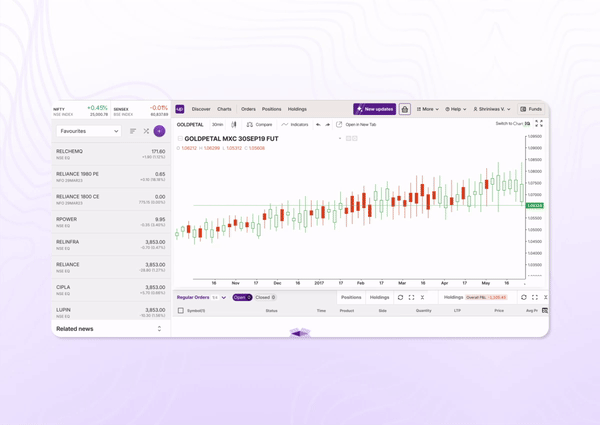 Customised Timeframe: Tweak chart time frames as you like on the Upstox Pro Web and TradingView platform.