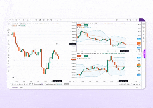 Lost track of the underlying? Just toggle a switch to overlay it on your derivative chart! See the underlying price scale on the left & derivative one on the right. Use it in bar or hollow candle mode!