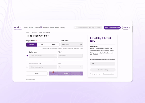 Simply visit our webpage and check any trade executed by you in the last 7 trading days irrespective of the broker you placed the trade. This is valid for all NSE Equity, F&O and currency segment.