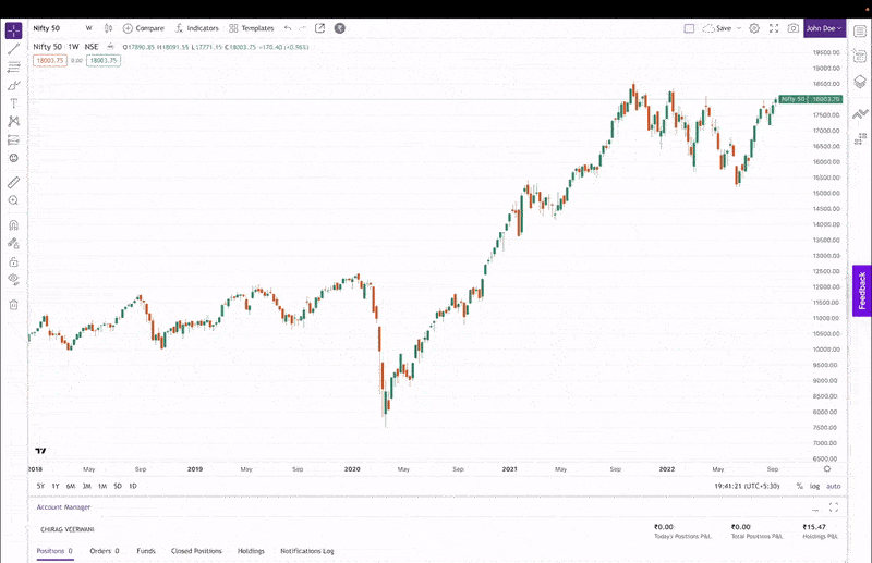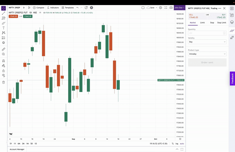 Place orders instantly, modify them and also track them directly from charts. This results in quick trading decisions, without missing out on trading opportunities due to switching between tabs and screens!