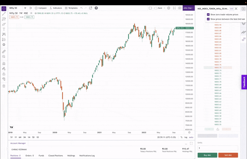 Earlier you were probably setting charts on the TradingView platform, while simultaneously viewing the option chain on our mobile app and placing orders from another tab. And due to all this you may have missed out a great price or trend. But not anymore.