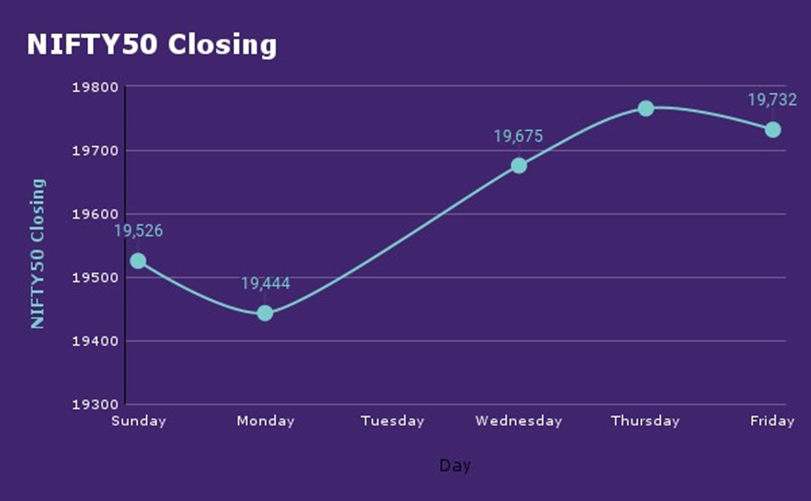 After the end of trading hours on Friday, the benchmark NIFTY 50 index was up 1.6% for the week, while the BSE Sensex ended 1.4% higher. Among the sectoral indices IT, auto, FMCG, metal and pharma sectors posted gains whereas the banks and financial services stocks logged losses this week.